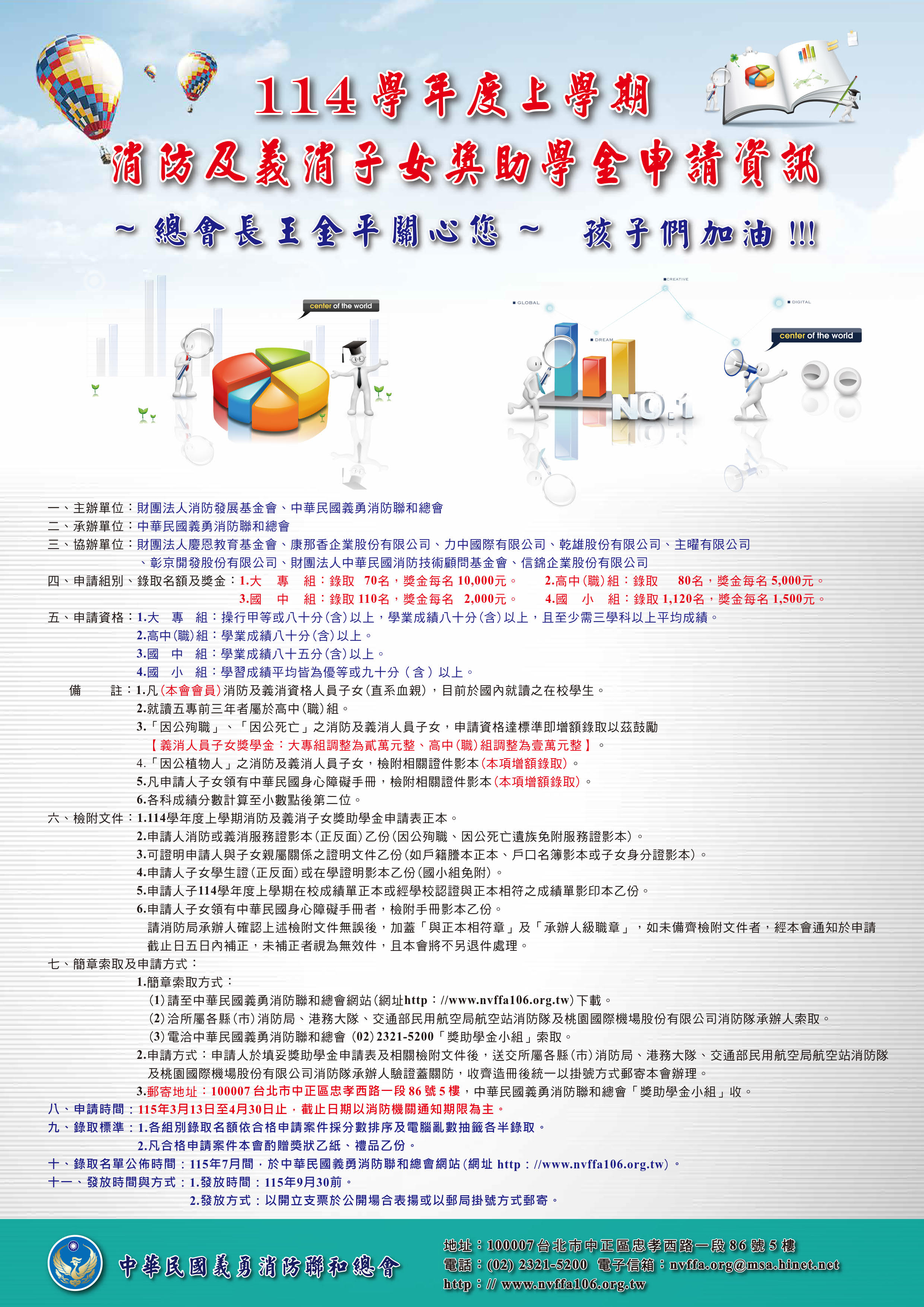 113學年度上學期消防及義消子女獎助學金-獲獎名單